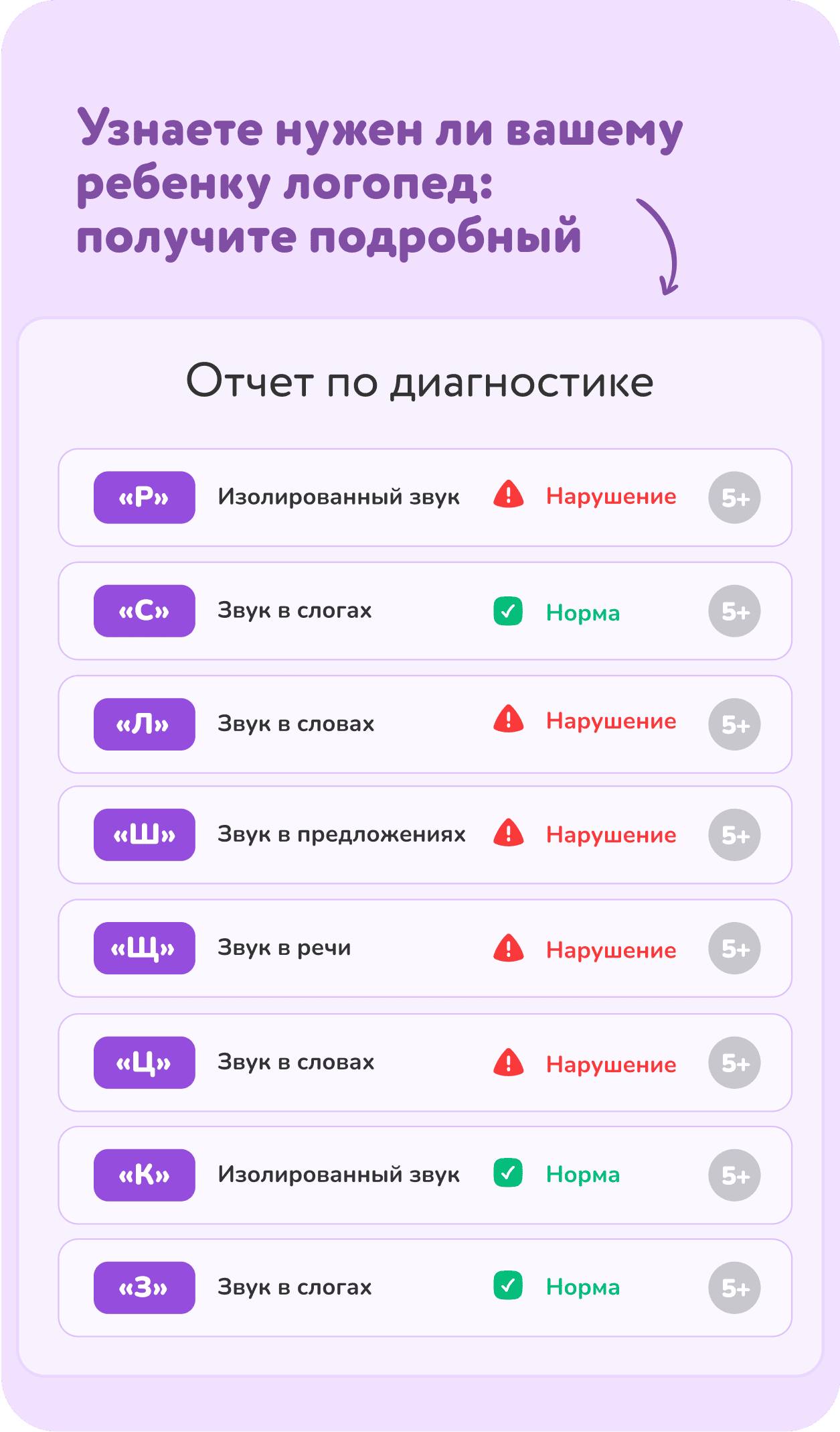 После диагностики наш специалист составит индивидуальный план занятий для вашего ребенка, учитывая количество проблемных зон и его особенности.